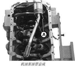 2. 松開帶帽螺釘 (A),拆下機油泵吸油管總成。