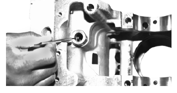 4. 在排油塞上安裝 O 形環(huán)和銅墊圈。如果使用銅墊圈,安裝時要墊高中心頂緊油塞。在油盤上安裝排油塞。按技術規(guī)格要求擰緊排油塞。
