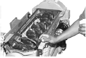 1. 如圖所示,在油盤支架上圍繞缸體上飛輪殼、前板和正時齒輪蓋位置,涂上 LOCTITE® 515 柔性快速成形襯墊。