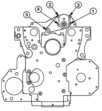 注意: 此步驟用于在未拆卸正時齒輪蓋的情況下安裝機油泵。如果從John Deere約翰迪爾強鹿柴油發(fā)動機上拆下正時齒輪蓋,請參見第 050 章“安裝和正時平衡軸(四缸John Deere約翰迪爾強鹿柴油發(fā)動機)”部分。
