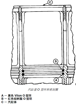 3. 在汽缸體 (C) 的下部 O 型環(huán)槽中安裝黑色 viton O 型環(huán)(A)。