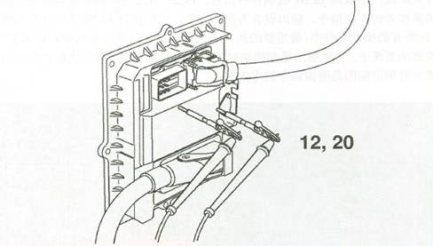 ~ 在對ECU(M)插頭內(nèi)的針腳進行測量時一定要使用合適的轉(zhuǎn)接導線,不可以用萬用表的表筆直接測量。