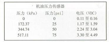 下表為一個機油壓力傳感器在不同的機油壓力輸出信號電壓值。具體在測量壓力傳感器時請參考電路圖上壓力傳感器參數(shù)表。