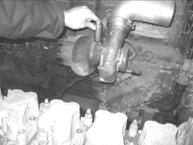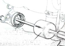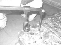 ● 維修時(shí)禁止吸煙。 ● 為避免嚴(yán)重灼傷,不要觸碰任何高溫金屬表面。 ● 關(guān)閉點(diǎn)火開關(guān),操作規(guī)程規(guī)定的除外。 ● 發(fā)動(dòng)機(jī)須在通風(fēng)良好的區(qū)域工作。 ● 避免在發(fā)動(dòng)機(jī)工作時(shí)拆卸零部件。 ● 操作時(shí)必須戴安全防護(hù)眼鏡。 二. 發(fā)動(dòng)機(jī)專用維修工具 1. 連接板定位器(WPT001),如圖1 配套使用工具:無 用途:給連接板做定位。 操作方法:如圖2 把連接板定位器(WPT001)插入圖中箭頭所指處,進(jìn)行連接板的定位。 圖1 連接板定位器 圖2 2. 噴油器拆卸器(WPT002),如圖3 配套使用工具:轉(zhuǎn)換手柄(WPT003) 用途:拆卸噴油器。 操作方法:如圖4 把轉(zhuǎn)換手柄(WPT003)的螺紋接頭旋入噴油器拆卸器(WPT002)的螺紋孔中,然后把噴油器拆卸器(WPT002)套在噴油器上,手握轉(zhuǎn)換手柄(WPT003)向上提出噴油器。 圖3 噴油器拆卸器 圖4 3. 轉(zhuǎn)換手柄(WPT003),如圖17 配套使用工具:可配合噴油器拆卸器(WPT002)使用。 用途:可做為加長手柄和慣性錘使用。 操作方法:如圖4,或18 做為加長手柄的操作方法見圖4, 做為慣性錘使用,見圖18 圖17轉(zhuǎn)換手柄(WPT003) 圖18 4. 活塞安裝錐套(WPT004),如圖5 配套使用工具:無 用途:固定活塞環(huán),以安裝活塞,保護(hù)活塞不受損壞。 操作方法:如圖6 先把活塞安裝錐套(WPT004)套在活塞和活塞環(huán)上,將活塞對準(zhǔn)氣缸后輕輕向下敲擊活塞,直至裝入。 圖5活塞安裝錐套 圖6 5. 液壓挺柱安裝器(WPT005),如圖7 配套使用工具:無 用途:拆裝液壓挺柱。 操作方法:如圖7和8 手握壓挺柱安裝器(WPT005)的手柄,柴油發(fā)動(dòng)機(jī),柴油發(fā)動(dòng)機(jī)專用維修工具,柴油發(fā)動(dòng)機(jī)專用維修工具資料,柴油發(fā)動(dòng)機(jī)專用維修工具服務(wù)商,且大拇指向下按液壓挺柱安裝器(WPT005)的壓頭(圖7中圓圈所指處),然后把液壓挺柱安裝器(WPT005)的下端插入液壓挺柱中(圖8中圓圈所指處),松開大拇指,即可開始進(jìn)行安裝。 圖7液壓挺柱安裝器 圖8 6. 前油封安裝器(WPT006),如圖9 配套使用工具:無 用途:安裝發(fā)動(dòng)機(jī)曲軸前油封。 操作方法:如圖10 將專用工具-前油封安裝器(WPT006)套上油封,然后一起裝在曲軸前端(用擰上配套螺栓的方法進(jìn)行安裝),通過擰動(dòng)前油封安裝器(WPT006)自身的螺母,把前油封壓入安裝到位。 圖9前油封安裝器 7. 后油封安裝器(WPT007),如圖11 配套使用工具:無 用途:安裝發(fā)動(dòng)機(jī)曲軸后油封。 操作方法:如圖12 將專用工具-后油封安裝器(WPT007)套上油封,然后一起裝在曲軸后端(用擰上配套螺栓的方法進(jìn)行安裝),通過擰動(dòng)后油封安裝器(WPT007)自身的螺母,把后油封壓入安裝到位。 圖11后油封安裝器 8. 氣缸套拆卸器(WPT008),如圖13 配套使用工具:無 用途:把缸套拔出汽缸。 操作方法:如圖14 取出汽缸兩側(cè)的M16*2.0的兩根螺桿,換上氣缸套拆卸器(WPT008)配套的兩根帶銷孔的光桿,并旋入被取出的兩根螺桿的位置。然后把氣缸套拆卸器(WPT008)的支架架在兩根帶銷孔的光桿上,把拔頭在另一端套在缸套上,在兩根帶銷孔的光桿上插上銷釘。最后通過擰動(dòng)氣缸套拆卸器(WPT008)上的螺母的方式,拔出缸套。 圖13氣缸套拆卸器 9. 氣缸套安裝器(WPT009) ,如圖21 配套使用工具:無 用途:把缸套壓入汽缸。 操作方法:如圖22 換上氣缸套安裝器(WPT009)配套的兩根帶銷孔的光桿(同氣缸套拆卸器配套的兩根光桿),并旋入汽缸側(cè)的兩個(gè)M16*2.0螺孔中。然后把氣缸套安裝器(WPT009)的壓頭壓在缸套上,并把氣缸套安裝器(WPT009)的主體支架架在兩根帶銷孔的光桿上插上銷釘。最后用手柄搖動(dòng)液壓千斤頂,把缸套壓入汽缸。 注意:當(dāng)液壓千斤頂行程不夠時(shí),可用手下壓液壓千斤頂把其行程重新歸零,同時(shí)把銷孔光桿上的銷釘下移,這樣可以彌補(bǔ)液壓千斤頂?shù)男谐滩粔?,同時(shí)又能繼續(xù)下壓缸套到合理的位置。 圖21氣缸套安裝器 10. 氣門油封安裝器(WPT010),如圖15 配套使用工具:無 用途:安裝發(fā)動(dòng)機(jī)氣門油封。 操作方法:如圖16 利用氣門油封安裝器(WPT010)在氣門導(dǎo)管上安裝氣門油封(此安裝工具的導(dǎo)桿為可拆卸式)。 注意:安裝不當(dāng)會(huì)引起泄漏,氣門油封不能重復(fù)使用。 圖15氣門油封安裝器 圖16 11. 氣門彈簧壓縮器(WPT011),如圖19 配套使用工具:無 用途:壓氣門彈簧,安裝氣門鎖夾。 操作方法:如圖20 把氣門彈簧壓縮器(WPT011)螺紋連接端旋入圖中箭頭所指處,然后把氣門彈簧壓縮器(WPT011)的壓頭壓在氣門彈簧上,手握住手柄,并下壓,直到手柄桿為水平狀態(tài),此時(shí)方可安裝氣門鎖夾。 圖19氣門彈簧壓縮器(WPT011) 圖20 12. 渦輪增壓機(jī)油接口拆裝器(WPT012),如圖23 配套使用工具:1/2″棘輪扳手 用途:拆裝渦輪增壓機(jī)油接口的螺栓。 操作方法:如圖24 把工具(WPT012)套在渦輪增壓機(jī)油接口螺栓上,配合使用工具1/2″棘輪扳手,進(jìn)行拆裝。 圖23渦輪增壓機(jī)油接口拆裝器 圖24 13. 銅錘(WPT013),如圖25 配套使用工具:無 用途:敲擊鈑金件和敲擊不希望被敲擊變形、凹陷、破裂的部件。。 操作方法: 握住銅錘(WPT013)的手柄,用錘頭敲擊希望被敲擊的部件或部位。 圖25銅錘(WPT013) 14. 卡簧鉗(WPT014),如圖26 配套使用工具:無 用途:拆裝卡簧。 操作方法:如圖27 用卡簧鉗(WPT014)鉗嘴的凹槽鉗