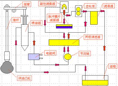 如圖所示為發(fā)動(dòng)機(jī)燃油流動(dòng)圖:燃油泵將燃油從油箱中吸起,經(jīng)過濾清、調(diào)速器等送到噴油器,根據(jù)PT系統(tǒng)的設(shè)計(jì),PT泵供給噴油器的燃油將有80%左右在工作中經(jīng)噴油器又回到油箱,主要起冷卻和潤滑噴油器,并防止寒冷氣候時(shí)燃油凍結(jié)及將PT系統(tǒng)里的空氣帶回油箱排掉的作用。