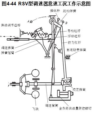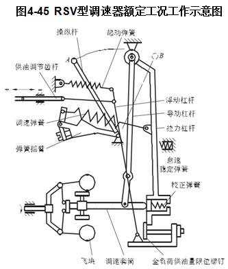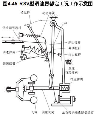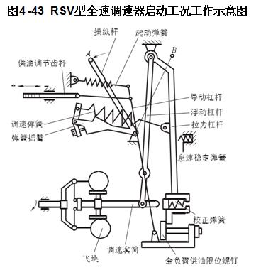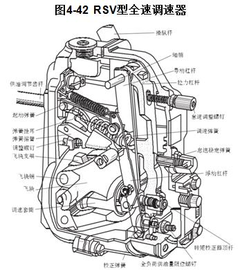 圖4 - 42所示為國產(chǎn)A型噴油泵上采用的RSV型全速調(diào)速器,與RAD型兩速調(diào)速器基本相同,但為了實現(xiàn)柴油機工作轉(zhuǎn)速范圍內(nèi)的全速調(diào)節(jié)控制,因而增設(shè)了以下結(jié)構(gòu):