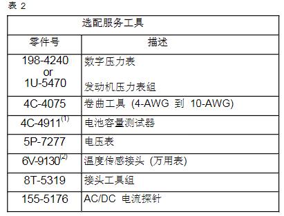 卡特電氣服務(wù)工具被設(shè)計(jì)用來幫助服務(wù)工程師完成以下任務(wù):• 獲得信息• 分析系統(tǒng)• 系統(tǒng)校準(zhǔn)• 系統(tǒng)設(shè)置• 數(shù)據(jù)鏈路通訊所需的服務(wù)工具表1列出的工具是服務(wù)工程師完成本手冊(cè)上的測試程序所需要的。