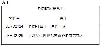 (2)參閱《特別指導(dǎo)》SEHS8382“ 溫度傳感接頭組6V-9130的使用”??ㄌ仉娮蛹夹g(shù)裝置(ET)卡特ET能顯示以下信息• 參數(shù)• 事件代碼• 診斷代碼• 發(fā)動(dòng)機(jī)設(shè)置技術(shù)人員使用卡特ET能實(shí)現(xiàn)以下功能:• 診斷測試• 校準(zhǔn)• 刷新程序• ECM設(shè)置表3列出使用卡特ET所需要的軟件。