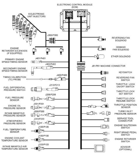 卡特彼勒C15和C18發(fā)動(dòng)機(jī)傳感器位置和電氣接頭配件與控制線束顏色標(biāo)識(shí)知識(shí)