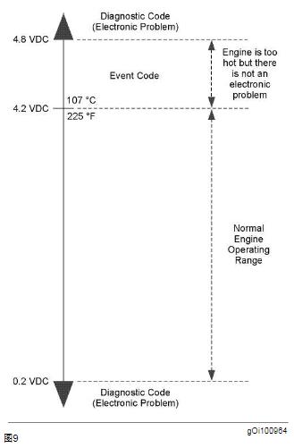 RENR5033-0275 故障排除章節(jié) 圖10g0i023565機(jī)油壓力圖系統(tǒng)響應(yīng):360(1)當(dāng)該事件代碼激活,“ 檢查CAT發(fā)動(dòng)機(jī)燈” 會(huì)閃亮。一旦CAT發(fā)動(dòng)機(jī)機(jī)油壓力升至21 kPa (3 psi),超過(guò)圖10中“機(jī)油低壓范圍”達(dá)到20秒,事件代碼會(huì)被記錄。 360(2)當(dāng)該事件代碼激活,“ 檢查CAT發(fā)動(dòng)機(jī)燈” 會(huì)閃亮。一旦CAT發(fā)動(dòng)機(jī)機(jī)油壓力升至21 kPa (3 psi),超過(guò)圖10中“機(jī)油低壓范圍”達(dá)到20秒,事件代碼會(huì)被記錄。 可能的性能影響:360(1)• 沒(méi)有性能影響。360(2)• ECM以每秒17.5%的速率,恢復(fù)扭矩到100%。故障排除:• CAT發(fā)動(dòng)機(jī)潤(rùn)滑系統(tǒng)存在問(wèn)題。• CAT發(fā)動(dòng)機(jī)機(jī)油壓力傳感器存在問(wèn)題。檢查CAT發(fā)動(dòng)機(jī)機(jī)油油位。A.檢查CAT發(fā)動(dòng)機(jī)機(jī)油油位。期望結(jié)果:CAT發(fā)動(dòng)機(jī)油位正常。結(jié)果:• OK-CAT發(fā)動(dòng)機(jī)油位正常。修理:參考《系統(tǒng)運(yùn)行/測(cè)試和調(diào)整》“ 潤(rùn)滑系統(tǒng)”獲得機(jī)油壓力的信息。停止。• 不行-CAT發(fā)動(dòng)機(jī)油位低。修理:添加機(jī)油到適當(dāng)位置。停止。i02490800E361冷卻液溫度高SMCS 代碼: 1395-038-TA生成該代碼的條件:發(fā)生下列情況:361(1)• CAT發(fā)動(dòng)機(jī)運(yùn)行至少3分鐘。• 冷卻溫度至少110 °C (230 °F)達(dá)到10秒。注意:如果冷卻溫度降至2 °C (36 °F),低于停止點(diǎn)達(dá)到4秒,警告會(huì)被取消。 361(2)• CAT發(fā)動(dòng)機(jī)運(yùn)行至少3分鐘。• 冷卻溫度至少111 °C (232 °F)達(dá)到10秒。注意:如果冷卻溫度降至2 °C (36 °F),低于停止點(diǎn)達(dá)到45秒,功率下降會(huì)被取消。 系統(tǒng)響應(yīng):361(1)