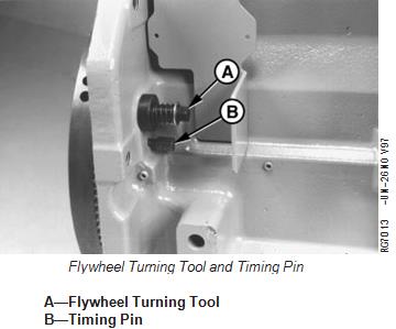 3.用飛輪車刀旋轉約翰迪爾JOHN DEERE6081發(fā)動機,直到正時銷與飛輪上的正時孔接合。