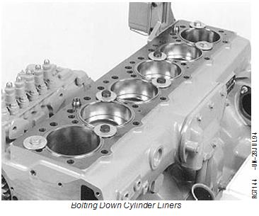 the seven locations as shown. Tighten cap screws to Bolting Down Cylinder Liners