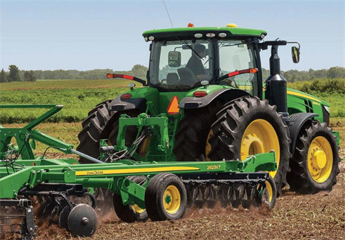 我們到紅光農(nóng)場之后,看到該拖拉機(jī)之后,給其排了一些氣,高壓軌道里有氣,排完之后啟動,不著火;檢查供油管線,發(fā)現(xiàn)油箱到粗濾芯的供油膠管有彎折現(xiàn)象。檢查之后并使彎折處盡量平緩后,又給高壓軌道排氣,之后啟動,把油門放到**大處,旋轉(zhuǎn)鑰匙,啟動約翰迪爾John Deere柴油機(jī)并噴兩下啟動液之后,該拖拉機(jī)啟動。