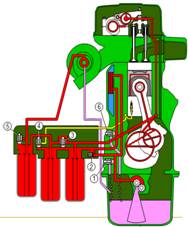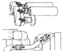 VOLVO沃爾沃柴油機(jī)的維修保養(yǎng)基本知識(shí) 安全注意事項(xiàng) VOLVO沃爾沃柴油發(fā)動(dòng)機(jī)每日檢查項(xiàng)目 養(yǎng)成在起動(dòng)發(fā)動(dòng)機(jī)之前和停機(jī)后直觀檢查發(fā)動(dòng)機(jī)的習(xí)慣。這有助于你及時(shí)發(fā)現(xiàn)燃油、潤(rùn)滑油或冷卻液的泄漏和其它一些已經(jīng)發(fā)生或?qū)⒁l(fā)生的異常情況。 VOLVO沃爾沃柴油發(fā)動(dòng)機(jī)一般的常規(guī)保養(yǎng) a) 檢查/更換空氣濾清器 發(fā)動(dòng)機(jī)停機(jī)后,空氣阻塞指示器如仍滯留紅標(biāo)時(shí),則應(yīng)更換空氣濾清器。更換后應(yīng)按壓阻塞指示器上的按鈕使其指示復(fù)位。 注意!空氣阻塞指示器未顯示紅標(biāo)時(shí),需更換空氣濾清器。被更換的空氣濾清器不能清洗和回用。 重要事項(xiàng)!連續(xù)運(yùn)行時(shí),應(yīng)該每8小時(shí)檢查一次空氣濾清器。 b) 檢查VOLVO沃爾沃柴油發(fā)動(dòng)機(jī)進(jìn)氣管路有無(wú)泄漏 檢查進(jìn)氣管路有無(wú)裂縫或其它損壞。如有必要應(yīng)予更換。檢查所有的軟管夾箍。 c) 調(diào)整VOLVO沃爾沃柴油發(fā)動(dòng)機(jī)怠速 首先檢查空氣濾清器是否堵塞。檢查當(dāng)油門機(jī)構(gòu)處于怠速位置時(shí),噴油泵上的油門拉桿(1)是否靠在怠速限位螺釘(2)上。還要檢查當(dāng)油門控制桿在最大油量位置時(shí),油門拉桿是否壓在最大供油限位螺釘(3)上。如有必要,則進(jìn)行調(diào)整。 警告提示!靠近正在運(yùn)行的發(fā)動(dòng)機(jī)或在其上工作是有危險(xiǎn)的。要小那些正在旋轉(zhuǎn)的零部件和高溫表面。 d) VOLVO沃爾沃柴油發(fā)動(dòng)機(jī)RSV調(diào)速器 1) 讓發(fā)動(dòng)機(jī)在怠速下運(yùn)行。 2) 如有必要,卸下園項(xiàng)螺帽(1),擰松鎖緊螺母(2),用螺釘(3)調(diào)整發(fā)動(dòng)機(jī)怠速。 如果發(fā)動(dòng)機(jī)空轉(zhuǎn)轉(zhuǎn)速不穩(wěn),應(yīng)該按下述方法調(diào)整其穩(wěn)定性。 1) 拆下園頂螺帽(4)并擰松鎖緊螺母(5)。小心地按順時(shí)針?lè)较驍Q動(dòng)怠速穩(wěn)定螺(6),直到發(fā)動(dòng)機(jī)轉(zhuǎn)速穩(wěn)定為止。 2) 檢查最高空轉(zhuǎn)轉(zhuǎn)速有否改變,如有改變,則說(shuō)明怠速穩(wěn)定螺釘(6)調(diào)整過(guò)大。 3) 完成調(diào)整后,鎖緊怠速穩(wěn)定螺釘(6),擰上園頂螺帽(4) e) VOLVO沃爾沃柴油發(fā)動(dòng)機(jī)RQV,RQ調(diào)速器 1) 讓發(fā)動(dòng)機(jī)在怠速下運(yùn)行。 2) 如有必要,用怠速螺釘(1)調(diào)整發(fā)動(dòng)機(jī)的轉(zhuǎn)速。 f) 檢查和調(diào)整VOLVO沃爾沃柴油發(fā)動(dòng)機(jī)傳動(dòng)皮帶 傳動(dòng)皮帶的檢查和調(diào)整應(yīng)該在發(fā)動(dòng)機(jī)運(yùn)行后皮帶熱態(tài)時(shí)進(jìn)行。 在張緊充電發(fā)電機(jī)皮帶之前,應(yīng)先擰松螺栓(A),使皮帶在兩皮帶輪的中點(diǎn)處可被壓下10mm,然后再擰緊螺栓(A)。成對(duì)工作的皮帶磨損后應(yīng)同時(shí)更換。 風(fēng)扇皮帶有自動(dòng)張緊器,不需要調(diào)整。但是必須檢查皮帶的狀況。如有必要,予以更換。 VOLVO沃爾沃柴油發(fā)動(dòng)機(jī)潤(rùn)滑系統(tǒng) 潤(rùn)滑油的更換周期取決于潤(rùn)滑油的品質(zhì)和燃油的硫含量,在40到500小時(shí)之間不等。要注意潤(rùn)滑油的更換周期決不可超過(guò)12個(gè)月。 如果要求潤(rùn)滑油的更換周期比下表所列時(shí)間更長(zhǎng),則潤(rùn)滑油的性狀必須由潤(rùn)滑油制造廠商作定期檢測(cè)。 VOLVO沃爾沃柴油發(fā)動(dòng)機(jī)潤(rùn)滑油 注意!只要能滿足上述要求,礦基的、半合成和全合成潤(rùn)滑油都可以使用。 1)必須使用TBN14-20潤(rùn)滑油 VDS=Volvo發(fā)動(dòng)機(jī)潤(rùn)滑油規(guī)格 ACEA=歐洲汽車制造商協(xié)會(huì) API=美國(guó)石油學(xué)會(huì) VOLVO沃爾沃柴油發(fā)動(dòng)機(jī)機(jī)油粘度 應(yīng)根據(jù)穩(wěn)定的外界溫度,按此圖表選擇粘度合適的潤(rùn)滑油。*指合成或半合成潤(rùn)滑油。 檢查潤(rùn)滑油油位 確保油位在MIN(最低)和MAX(最高)標(biāo)記之間。 重要事項(xiàng)!連續(xù)運(yùn)行時(shí)應(yīng)每隔8小時(shí)檢查一次油位。 檢查靜態(tài)未運(yùn)轉(zhuǎn)發(fā)動(dòng)機(jī)的油位時(shí),應(yīng)查看油標(biāo)尺上標(biāo)有“STOP”(停機(jī))的那一面(至少等發(fā)動(dòng)機(jī)停止運(yùn)行3分鐘后)。 警告提示!靠近運(yùn)行中的發(fā)動(dòng)機(jī)或在其上工作是有危險(xiǎn)的。要小心那些旋轉(zhuǎn)著的零部件和灼熱表面。 更換VOLVO沃爾沃柴油發(fā)動(dòng)機(jī)潤(rùn)滑油和潤(rùn)滑油濾清器 必須遵守推薦的潤(rùn)滑油更換周期,并必須同時(shí)更換潤(rùn)滑油濾清器。 a) 徹底清潔濾清器安裝座,以免更換濾清器時(shí)污物進(jìn)入發(fā)動(dòng)機(jī)。 b) 使發(fā)動(dòng)機(jī)運(yùn)行至正常的工作溫度。 警告提示!高溫潤(rùn)滑油和灼熱表面會(huì)造成燙傷。 c) 拆下底部螺塞,放盡潤(rùn)滑油。 d) 換用新墊片后裝上底部螺塞。 e) 拆下濾情器 (1)和旁通濾情器(2)。檢查并確保發(fā)動(dòng)機(jī)的接合面上無(wú)殘留墊片。給新的濾清器加注潤(rùn)滑油,并在新墊片上薄施一層潤(rùn)滑油。用手?jǐn)Q緊濾清器直到壓住墊片,然后再擰緊半圈(不要擰得過(guò)緊!)。 f) 加注潤(rùn)滑油至正確油位。不