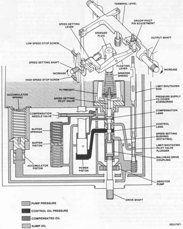 3161調(diào)速器的端軸在全負(fù)荷42度下轉(zhuǎn)動(dòng)時(shí),無(wú)論燃料是否打開,都可以產(chǎn)生最大為8?!っ祝?/span>6磅英尺)的扭矩。因?yàn)檎{(diào)速器端軸在液壓下可以雙向移動(dòng),且在調(diào)速器外部沒有使用回位彈簧。當(dāng)調(diào)速器沒有工作時(shí),調(diào)節(jié)器內(nèi)有一個(gè)1.4?!っ祝?/span>1磅英尺)彈簧將端軸移動(dòng)到全閉合位置。