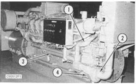 (1)通向卡特CAT發(fā)動(dòng)機(jī)汽缸組前部的水管(2)冷卻劑引入口(3)油冷卻器(4)水泵