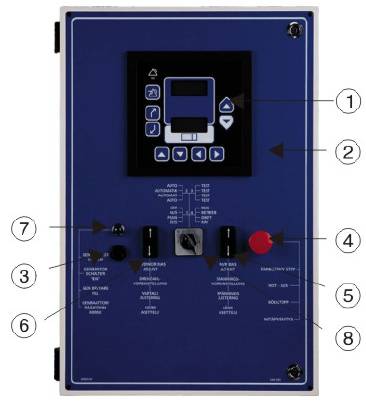 此系列的控制系統(tǒng)是由一個(gè)微電腦處理器(2組4行16位英文液晶屏幕)組成,此微電腦處理器使用密碼保護(hù)方法來更改內(nèi)部程序而配合機(jī)組需求,所以可以安裝于所有威爾信的發(fā)電機(jī)組上,用