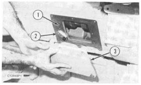 1. 從卡特CAT發(fā)動機(jī)兩側(cè)卸下凸輪軸后蓋(3)。