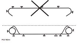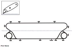 5 密封件必須使用沃爾沃遍達(dá)零件號(hào) 1161277 膠合。在兩半密封件相遇地方的上面和下面涂抹一層膠水。在圖示點(diǎn)涂抹膠水。擦去多余的膠水。安裝前等待 30 分鐘以上,以讓膠水干燥