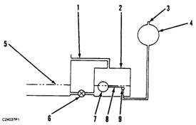 3161調(diào)速器將發(fā)動(dòng)機(jī)潤(rùn)滑油應(yīng)用于其液壓系統(tǒng)。潤(rùn)滑油(通過壓力)通過一個(gè)小孔被送入到調(diào)速器的儲(chǔ)油器,而這個(gè)小孔可以自調(diào)速器上拆除下來進(jìn)行清洗。當(dāng)發(fā)動(dòng)機(jī)旋轉(zhuǎn)驅(qū)動(dòng)軸時(shí),潤(rùn)滑油從內(nèi)部通道進(jìn)入抽吸裝置一側(cè),隨后進(jìn)入泵的壓力側(cè)。一個(gè)緩沖彈簧和活塞將泵的壓力大約保持在690千帕(10psi)。緩沖彈簧在氣缸中向上移動(dòng),直到泵的壓力達(dá)到690千帕(100psi),這個(gè)時(shí)候,活塞上的閥門將被開啟以控制壓力。