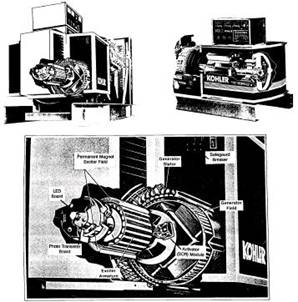 科勒公司于1976年推出FRⅠ快速響應發(fā)電機,其特點為采用了全新的勵磁控制方式。這些年來,盡管元件的結構,位置與外觀均有所變化,但在現(xiàn)在的FRⅡ快速響應發(fā)電機組上,基本概念仍然保持不變。