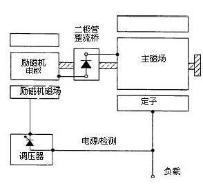 該系統(tǒng)采用繞制的勵磁電樞,它與主磁場同軸旋轉。通過將主發(fā)電機的交流輸出的一小部分整流,調(diào)壓器給勵磁機磁場提供可調(diào)的直流電源。