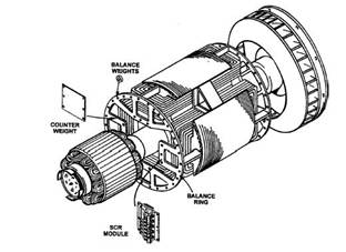轉子磁極上一穿孔的鋁環(huán),使轉子平衡更容易且精確。SCR模塊及平衡盤也附在該鋁環(huán)上。