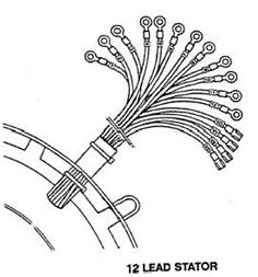 12-導線發(fā)電機可以連接成提供單相電源。這種接法被稱為“狗腿”。用這種接法,120與240伏的單相電路都可以得到。