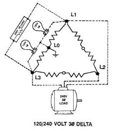 最明顯的例子是120/240伏三相△形系統(tǒng)用在既有120伏和240伏單相負載又有240伏三相負載時。
