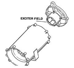 勵磁發(fā)電機是永久磁場旋轉電樞型的??蚣芙M件是用螺栓連接在主定子端部撐架上并隱藏在主框架內(nèi)。