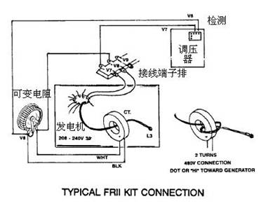 FR調(diào)壓器檢測電壓平均值。在發(fā)電機端子V7-V8上監(jiān)測標稱值為190V-277V的單相電壓傳感信號。