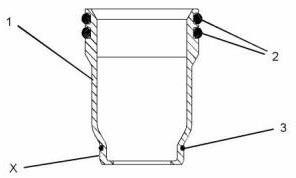 4. 在電子單體噴油器套筒(1)的表面(X)上涂抹一小片連續(xù)的工具(C)。