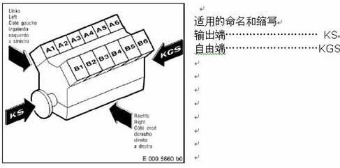 發(fā)動機排的命名總是按面向輸出端來觀察的。左排缸標識為A 排,右排缸標識為B 排(按照DIN ISO 1204 標準)。每排氣缸由輸出端起,從1 開始連續(xù)編號。