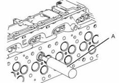 1. 使用工具(A)和錘子從氣缸蓋上拆下氣門導(dǎo)管。