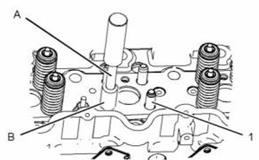 2. 使用工具(A)和工具(B)將氣門導(dǎo)管(1)安裝到氣缸蓋中。