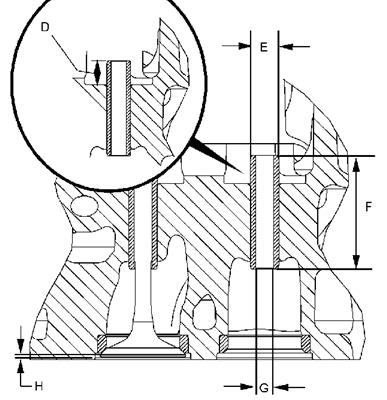 (E) 氣門導(dǎo)管的外徑 13.034 至 13.047 mm(0.51315 至 0.51366 in)