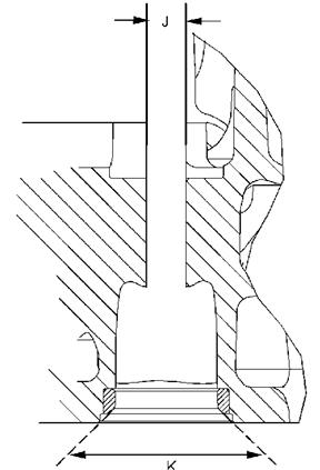 (J) 缸蓋中原有孔的直徑 13.000 至 13.027 mm(0.51181 至 0.51287 in)