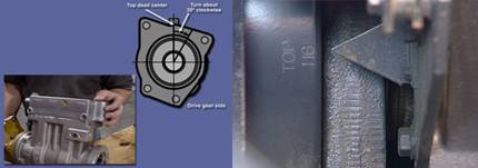 康明斯Cummins QSK23發(fā)動(dòng)機(jī)空氣壓縮機(jī)在安裝時(shí)需要對(duì)正時(shí)。要使空氣壓縮機(jī)正確正時(shí), 發(fā)動(dòng)機(jī)必須處于1-6缸上止點(diǎn)。對(duì)正曲軸減震器上的TOP 1-6標(biāo)記。