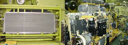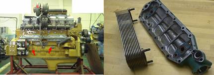 康明斯Cummins QSK23發(fā)動(dòng)機(jī)右側(cè)有兩個(gè)機(jī)油冷卻器。 工業(yè)用發(fā)動(dòng)機(jī)冷卻器是9片. 發(fā)電機(jī)組用發(fā)動(dòng)機(jī)冷卻器是11片.