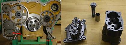 康明斯Cummins QSK23發(fā)動(dòng)機(jī)機(jī)油泵裝在發(fā)動(dòng)機(jī)前端.此三個(gè)齒輪泵以1.45倍曲軸轉(zhuǎn)速運(yùn)轉(zhuǎn)。