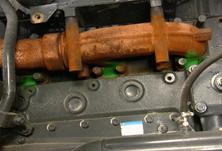 康明斯Cummins QSK23發(fā)動機標記排氣歧管6個排氣口的每一個。要確保6個氣缸都標記在排氣歧管上或下方相同的位置,以便在進行溫度測量時確保