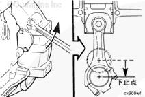 將連桿推入氣缸,離開曲軸,以便拆下上軸承軸瓦。