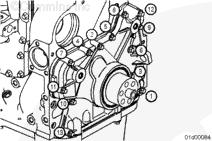 注: 正確支撐前齒輪室蓋的機(jī)油油封法蘭,防止損壞機(jī)油油封和前齒輪室蓋。