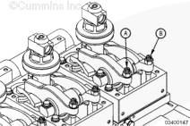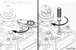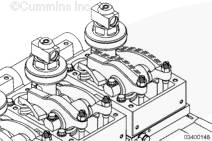 確保零件已對準(zhǔn),并且擰緊調(diào)整螺釘,將機油擠出氣門和康明斯噴油器機構(gòu)。