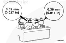 試著將厚度增大 0.03 mm [0.001 in] 的塞尺插入。如果更厚的塞尺可以插入,則氣門間隙不正確。
