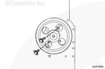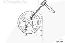 如有必要,轉(zhuǎn)動(dòng)凸輪軸以便凸輪軸上的孔能夠接近止推板上的螺紋孔。安裝兩個(gè)螺栓和鎖定板。扭矩值: 45 n.m [33 ft-lb]