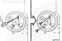 檢查噴油正時(shí)。如果需要,拆下凸輪軸齒輪并改動(dòng)鍵子。參考第 6 節(jié)中的步驟 006-025。