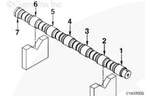 解體期間,不得損壞凸輪軸或襯套。拉出凸輪軸時(shí),來(lái)回輕輕轉(zhuǎn)動(dòng)凸輪軸。