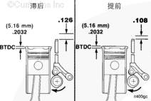 使用偏移鍵可以在齒輪系正時(shí)保持不變的前提下,使凸輪軸輪廓略微偏轉(zhuǎn)。偏移鍵的頂部沿凸輪軸正常的旋轉(zhuǎn)方向偏轉(zhuǎn)越多,噴油正時(shí)延遲程度就越大。推桿行程數(shù)值將增加。