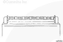 K38 和 K50 發(fā)動(dòng)機(jī)的凸輪軸有所不同,然而安裝步驟相同。確保安裝了正確的凸輪軸。參閱控制零件目錄 (CPL) 了解正在修理的發(fā)動(dòng)機(jī)。有些較新的 K50 發(fā)動(dòng)機(jī)安裝了使發(fā)動(dòng)機(jī)具有不同點(diǎn)火次序的凸輪軸。記錄壓印在凸輪軸端部的零件號(hào),以備將來(lái)參考。使用 Lubriplate™ 徹底潤(rùn)滑每個(gè)凸輪軸和所有凸輪軸襯套。